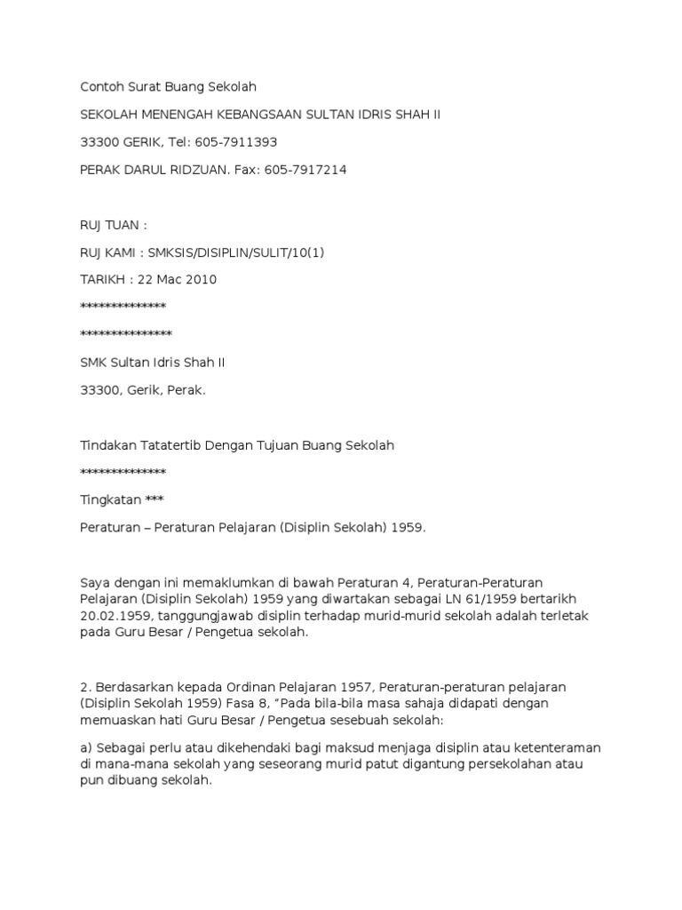 Surat akuan terima makluman tindakan tatatertib buang sekolah kali pertama dengan segala hormatnya perkara di atas adalah dirujuk. Berikut adalah contoh surat pemberitahuan yang dikeluarkan oleh sekolah untuk para guru demikian surat pemberitahuan ini kami buat, atas perhatian dan kerjasama bapak/ibu guru karyawan kami ucapkan terima kasih. Atas perhatian bapak / ibu guru. Besar harapan saya agar permohonan dapat terkabul. Contoh surat dinas osis undangan rapat.