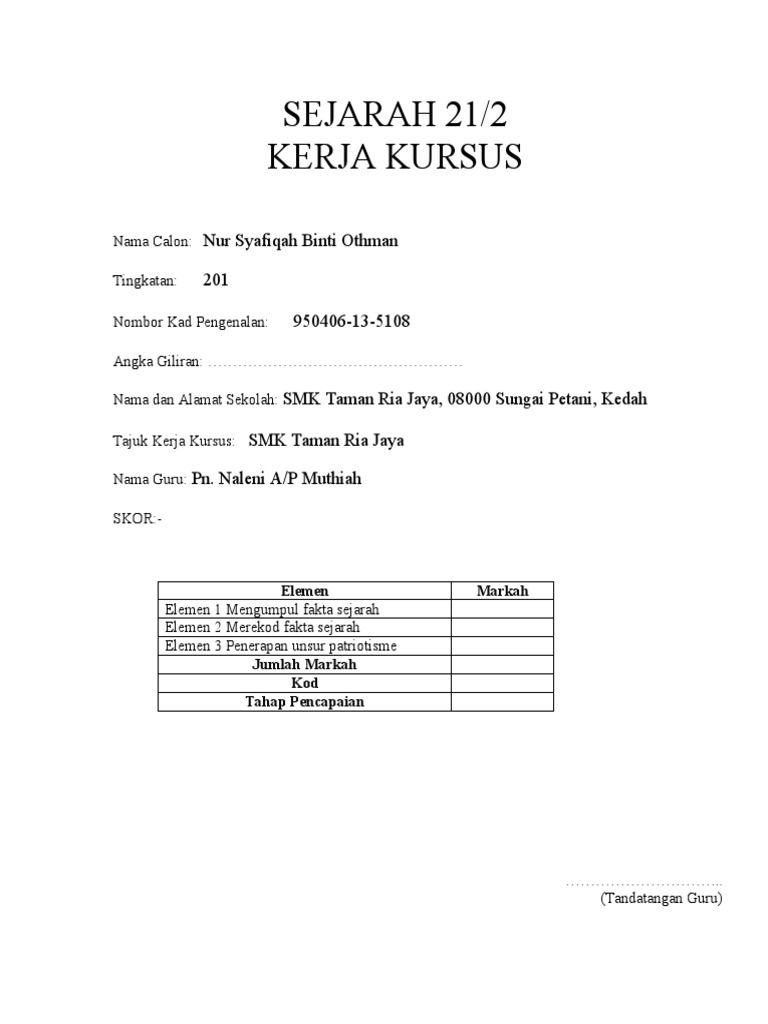 Contoh jawapan kerja kursus sejarah pt3 2020|anda calon menduduki peperiksaan pt3 tahun 2020? Bab 1 alam melayu other contents: Latar taklimat penataran tugasan tingkatan 4 dan penyelarasan penskoran tingkatan 5 kerja kursus mpei spm 2019 2020 mata pelajaran pertanian. Terlebih dahulu saya mengucapkan berbanyak terima kasih kepada guru sejarah iaitu en.zul zainuhal bin suhaimi kerana telah berjaya membimbing saya menyiapkan. Contoh kerja kursus_geografi_20111 via www.slideshare.net.